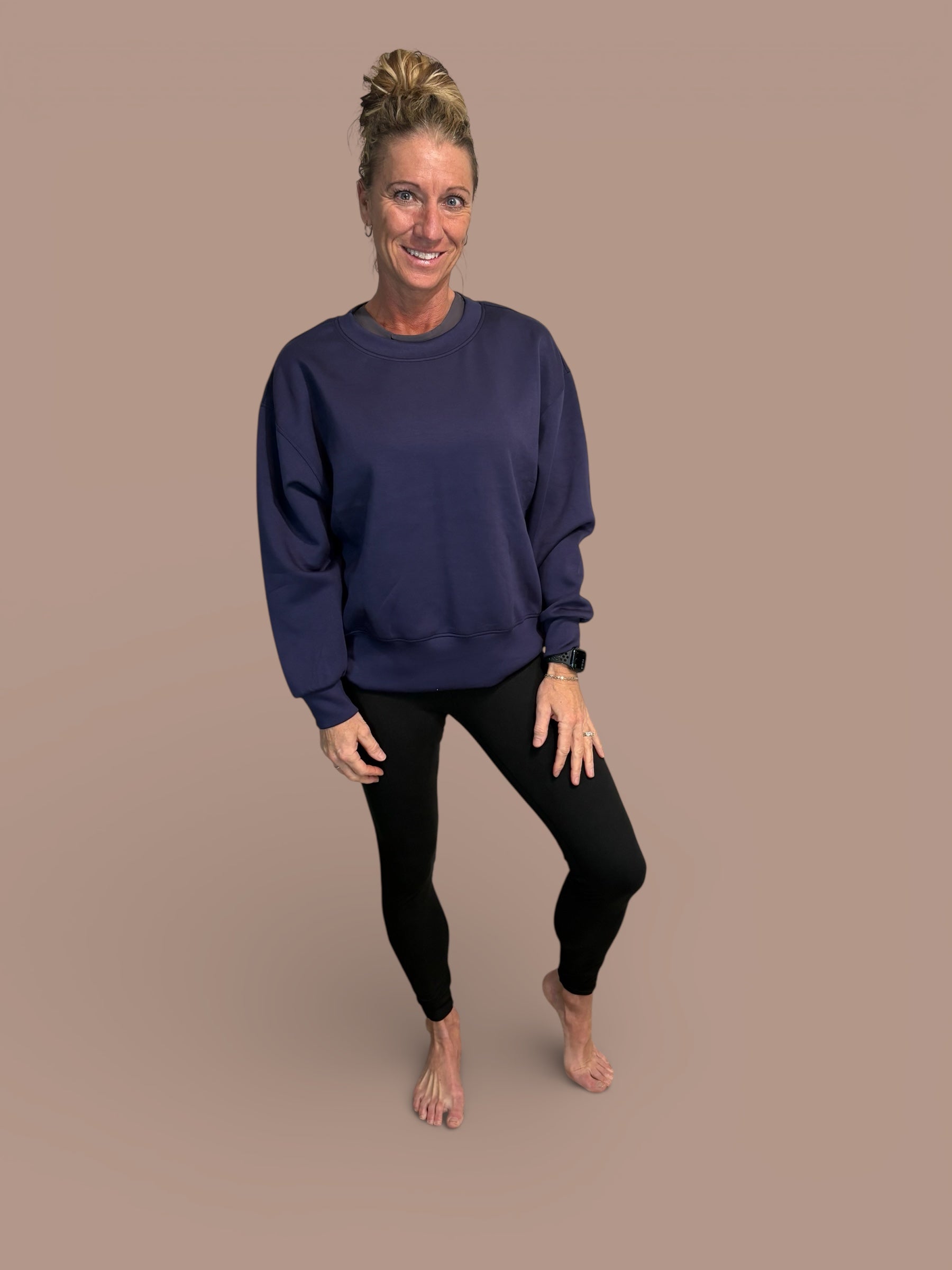 The Apex Tee feels like a second skin, the leggings are smoothing without being tight, and the Lux Crewneck is that cozy layer you never want to take off.