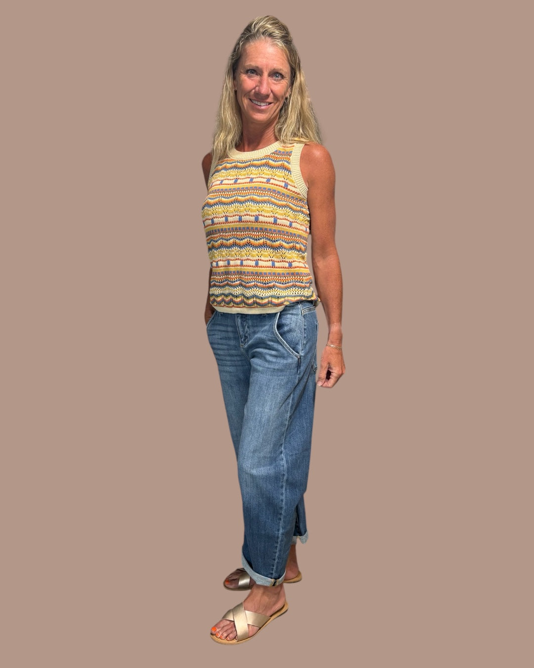 The Boho Vest adds the perfect pop of texture and color without trying too hard. It’s lightweight, breathable, and gives that relaxed, slightly vintage feel that makes a simple outfit look styled.