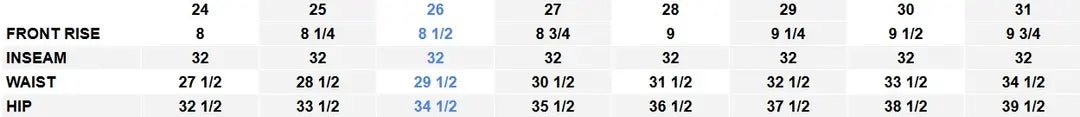 | 26 | 29 1/2" | 34 1/2" | 8 1/2" | 32" |