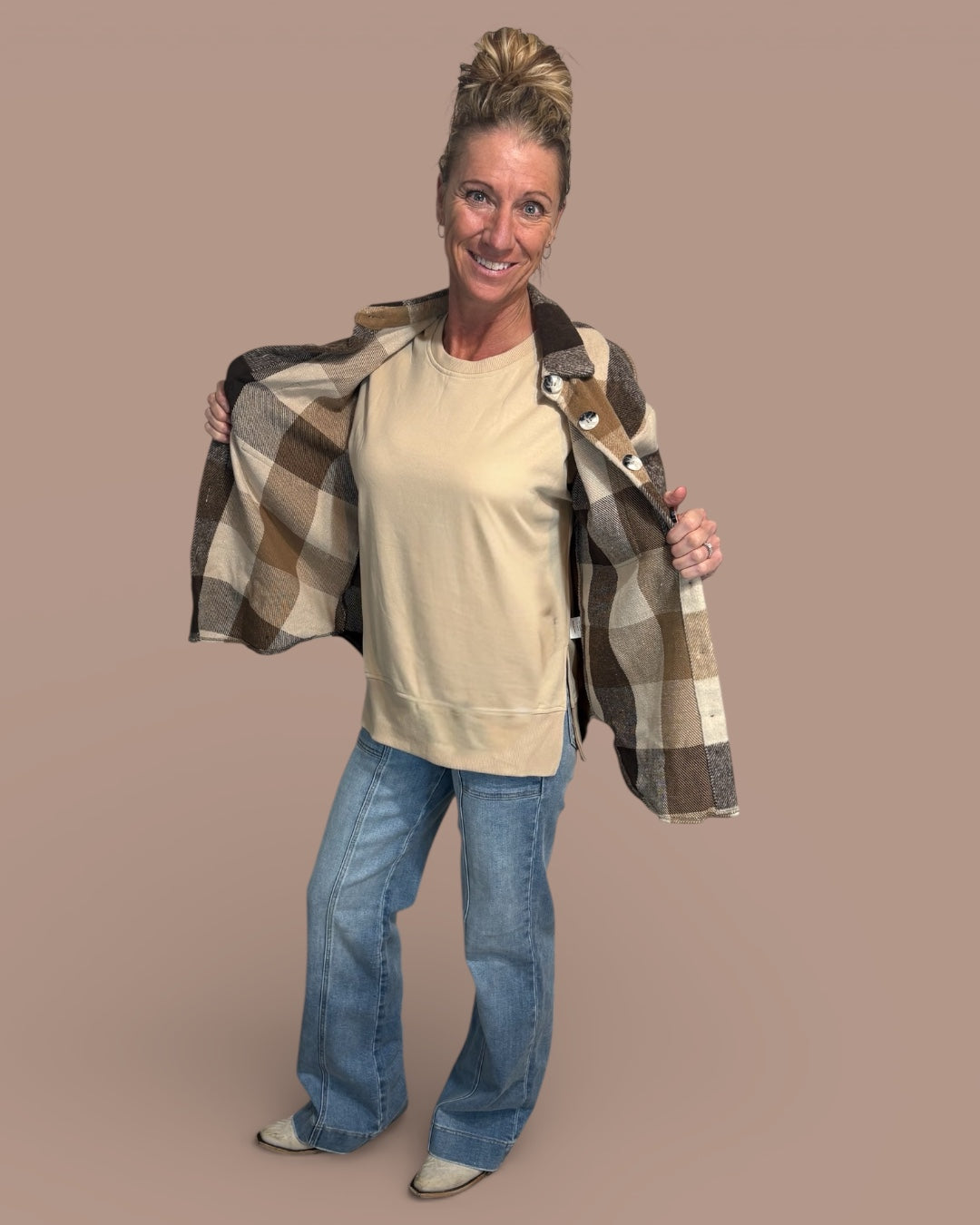 A good shacket, an easy sweatshirt, and my favorite jeans — cozy enough to stay warm, but still pulled together.