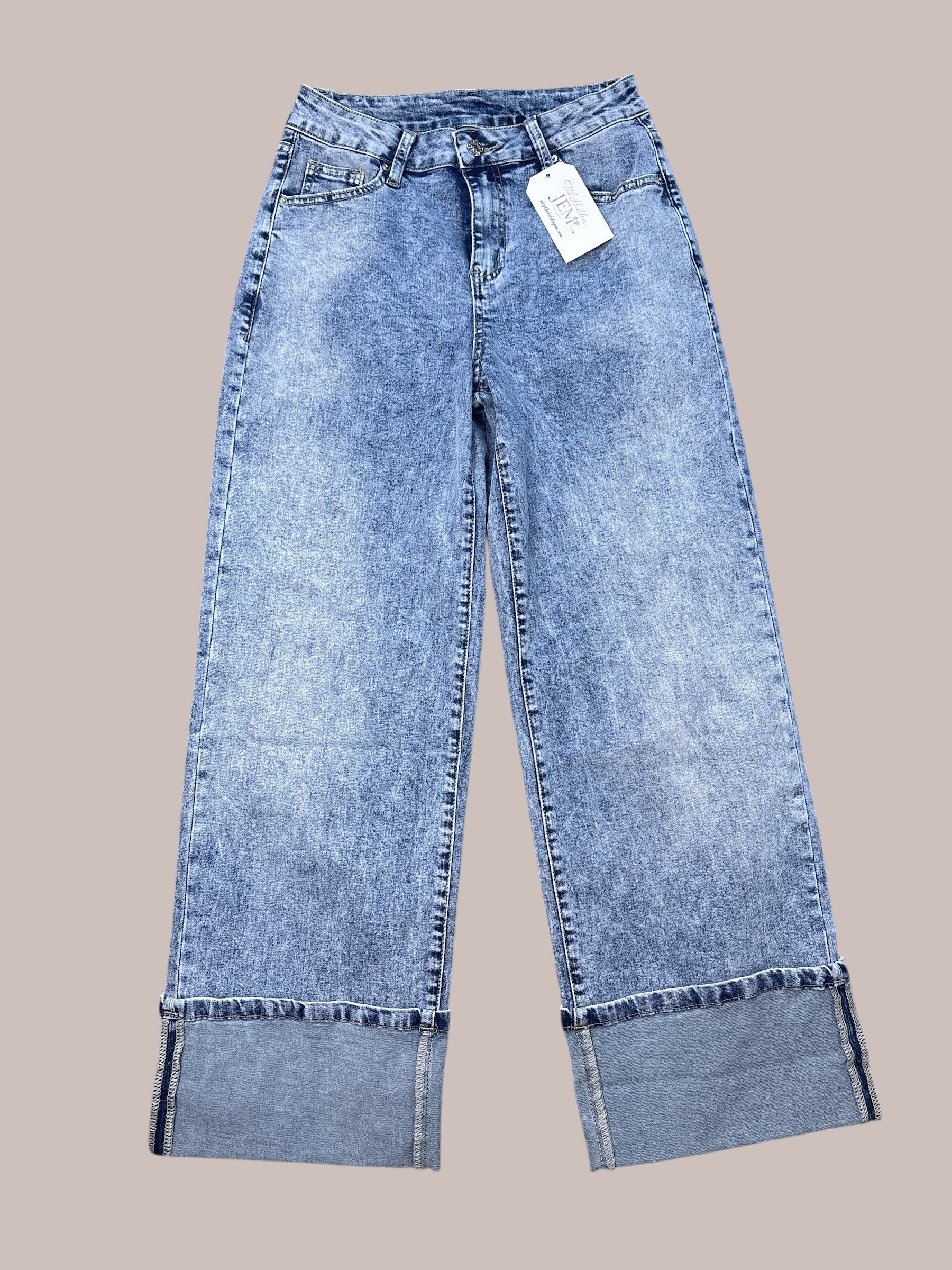 The standout detail is the wide cuff hem, which adds a playful, on-trend finish without feeling overdone. Comfortable, flexible, and easy to move in β this pair is all about wearability.