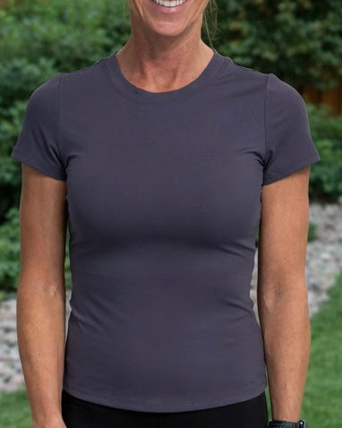 This is one of those tees you don’t realize you need until you put it on. The Apex Tee has a smooth, second-skin feel with a snug, flattering fit that hugs your body without feeling restrictive.